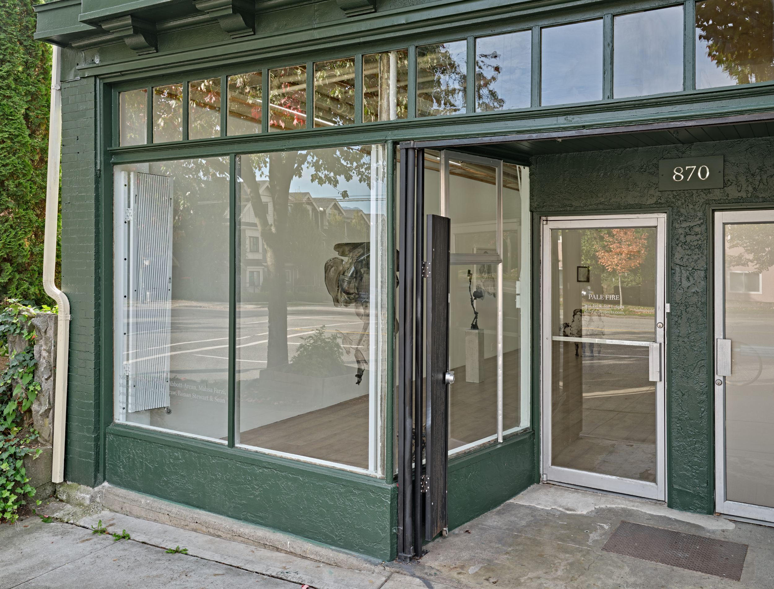 Pale Fire is an art gallery in Vancouver, BC, Canada that was established by Amy Kazymerchyk in 2022. The gallery currently presents eight to ten week exhibitions, while establishing a foundation upon which it can nurture long term relationships with artists, audiences, collaborators and patrons. With time, the gallery’s program will expand to include site specific, temporal or ephemeral satellite projects.